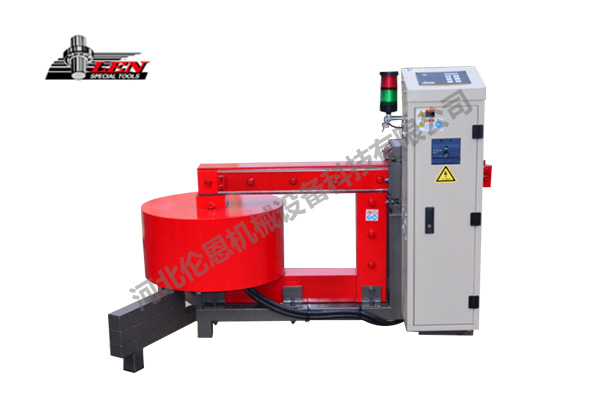 此設備功率為40KVA,主要用于兆瓦級風力發電機套裝工序中,對后軸承密封保持架、NU軸承內圈、后軸定位環等環形工件進行加熱處理。外徑760mm-1000mm工件可在15分鐘以內加熱到110C -160C。